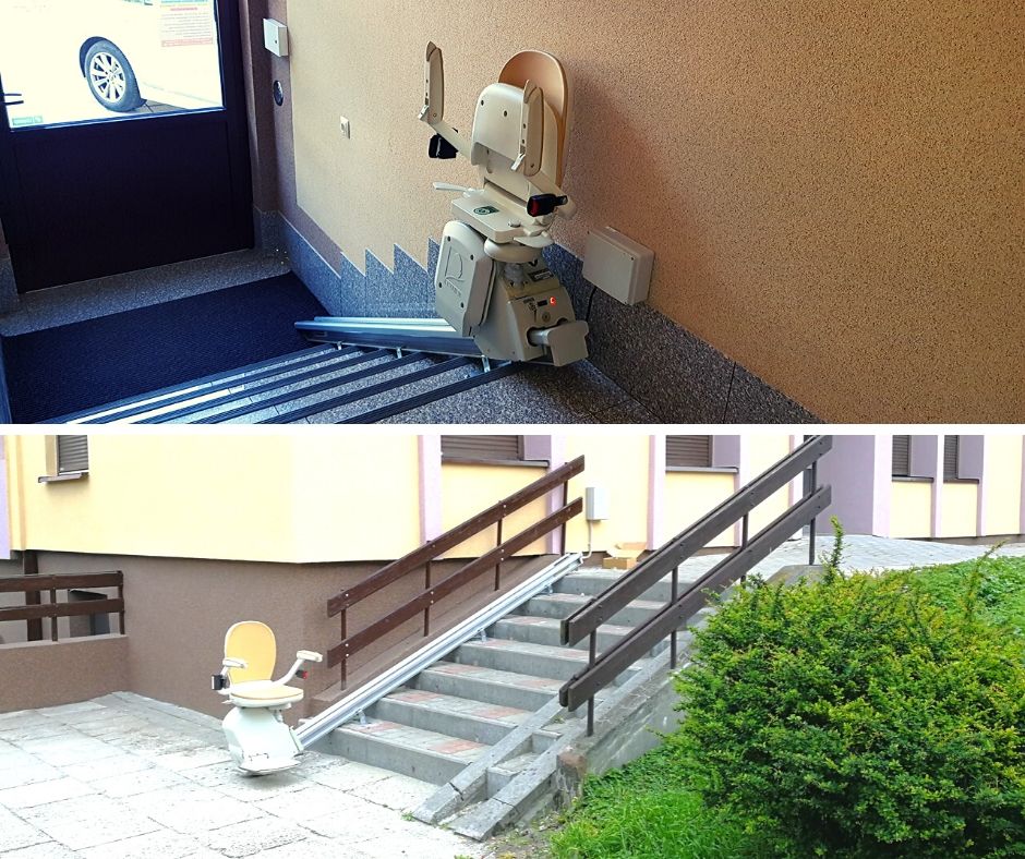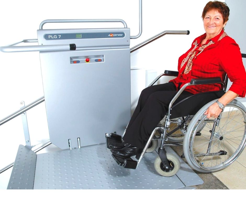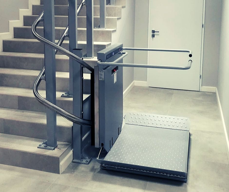 Ten estetycznie wykonany dźwig służy do bezpiecznego przewożenia pomiędzy piętrami osób, które poruszają się na wózkach inwalidzkich. W przeciwieństwie do tradycyjnej windy jest montowany w biegu schodów – sunie nad stopniami, nie zajmując niepotrzebnie miejsca na klatce schodowej. Platforma przyschodowa umożliwia osobie niepełnosprawnej pokonanie schodów w komfortowy sposób – bez wysiłku i pomocy ze strony opiekuna. Jej założenie nie wymaga remontu ani przebudowy instalacji elektrycznej. Do zasilania urządzenia wystarczy prąd płynący ze zwykłego gniazdka elektrycznego. Warunkami zamontowania platformy są: odpowiednia szerokość biegu schodów oraz co najmniej 150 cm wolnej przestrzeni przed pierwszym stopniem (na dole).